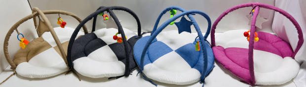Cushioned Play Surface: Features a soft, padded base (often with a dimple-dot texture) that is gentle on baby’s back and head during play or rest.