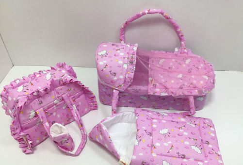 Portable Carry Bed/Bassinet: A lightweight, padded bed with high sides and a hood, perfect for supervised naps or as a familiar place for baby to rest when traveling. Includes sturdy carrying handles.